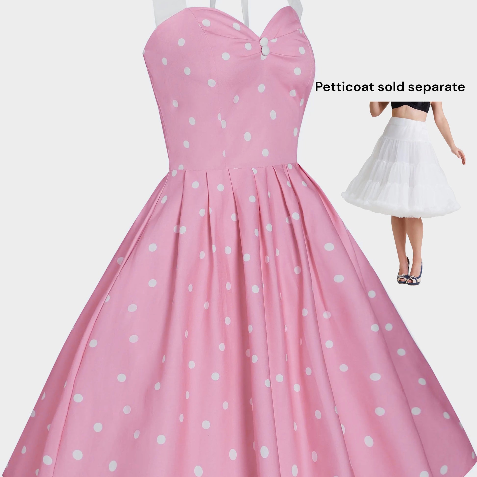 Alter neck Swing Dress. Polka dot/pink/white